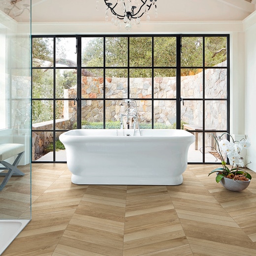美しい木目を表現しながら、高品質な磁器質タイルと現代的な色調でデザイン貼りの新しい表情を引き出します。木目はオーク材を基準に、数え切れないほどのパターンを表現。小ぶりのサイズで扱いやすく、より変化に富んだデザイン貼りが可能。明るい印象のカラーから現代的なスモーキーカラーまで、幅広い空間演出に対応できる色展開です。