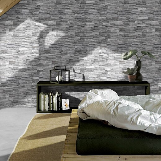 《ロックス》は、“田舎のロッジ”をイメージし、人気の高い天然石クオーツサイト(石英岩)の石目を立体的に再現した磁器質タイル。凹凸感もさまざまな53パターンもの表情を持ち、色調も豊富なので、本来のクオーツサイト以上に空間演出の可能性が広がります。また内装だけでなく外装にも使うことができ、水まわりにもOK。ブリックサイズなので、TVの後ろなどの狭いスペースにアクセントとして貼ることもできます。