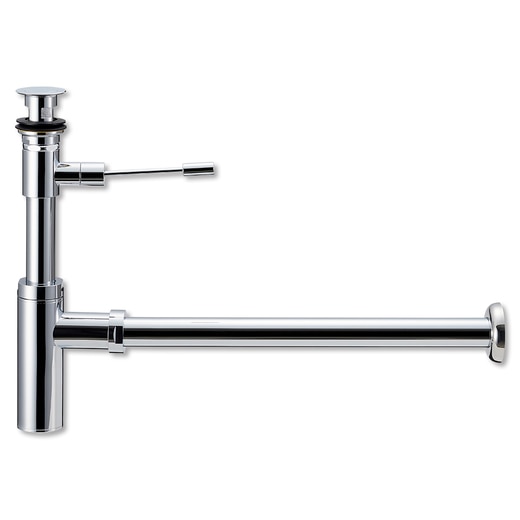 排水口金物+壁排水用ボトルトラップのセットです。ポップアップの操作はキックバーにて行います。