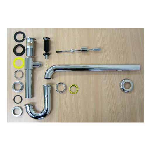 排水口金物+壁排水用Pトラップのセットです。ポップアップの操作はキックバーにて行います。