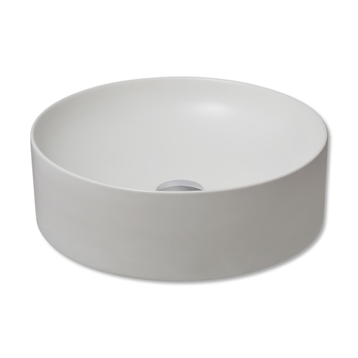 ≪シガラキエン400 白雪≫は、幾何学的なフォルムに日本の美しい山里の冬の風情を細かい白雪のような粒子で表現した洗面ボウルです。素朴な風合いの質感は我々日本人好みの馴染みの深い風合いです。