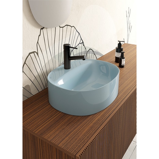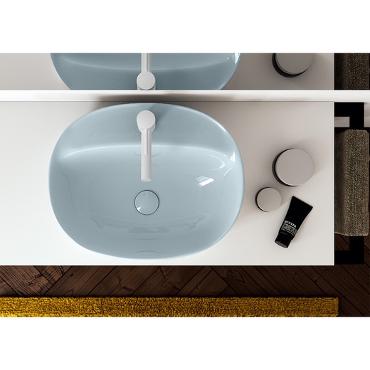 Studio Adolini が スカラベオ社のためにデザインした洗面台の新しいコレクション。雨だれが岩を少しずつ削り、表面が滑らかに窪んでゆく…。《スキニブル》は、そんな悠久のプロセスからインスピレーションを得てデザインされました。豊富なカラーバリエーションでお気に入りの空間に合わせてお選びいただけます。
