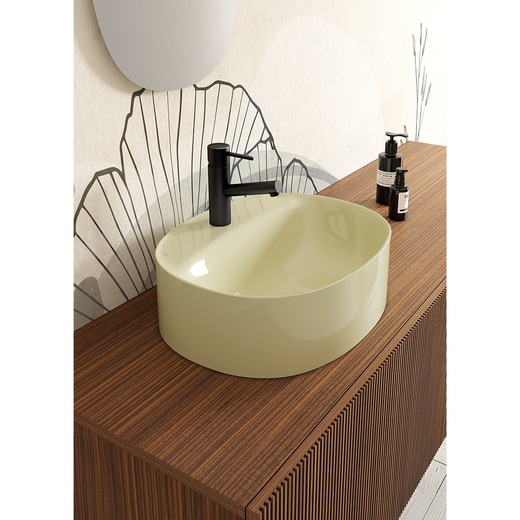 Studio Adolini が スカラベオ社のためにデザインした洗面台の新しいコレクション。雨だれが岩を少しずつ削り、表面が滑らかに窪んでゆく…。《スキニブル》は、そんな悠久のプロセスからインスピレーションを得てデザインされました。豊富なカラーバリエーションでお気に入りの空間に合わせてお選びいただけます。