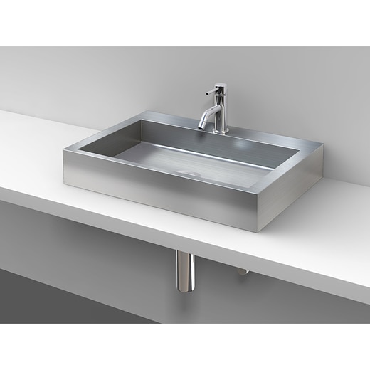 - ヘアライン仕上げ ※排水開口がヨーロッパ規格のため、下部の必要排水金物と一緒にご購入ください。(※国内仕様のトラップは適合しておりません。) ※写真の水栓、排水金物等は含まれておりません。「適合水栓」よりお選びください。 ※製造上、寸法誤差がございます。現物を確認の上施工してください。 ※水栓後ろの壁にタイル等を後貼りされると、水栓のレバーが干渉する場合がございますのでご注意ください。