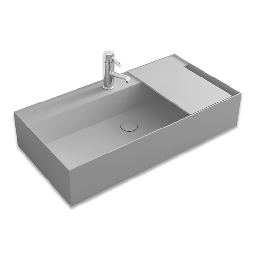 人工大理石製だからできる、エッジがきいたデザインが特徴のオルロノフ。マットでシックな配色、目皿カバーも同色・同素材を使用し、スタイリッシュに仕上がっています。