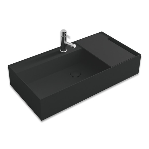 人工大理石製だからできる、エッジがきいたデザインが特徴のオルロノフ。マットでシックな配色、目皿カバーも同色・同素材を使用し、スタイリッシュに仕上がっています。