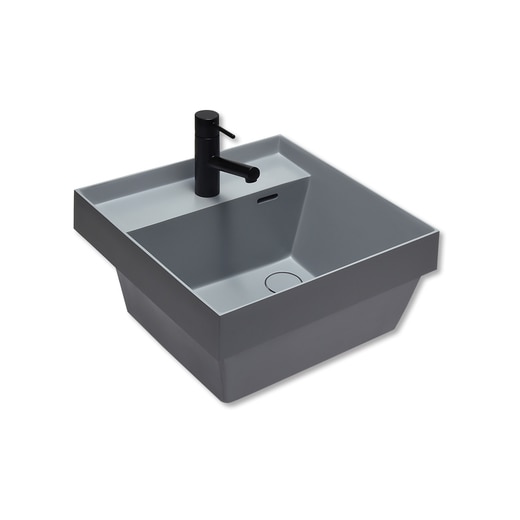 人工大理石製による深型の洗面ボウル。シャープなエッジが水はねを防ぎ、また、カウンター半埋め込みタイプのため、深さのあるボウルでもすっきり収まります。目皿カバーも同色・同素材を使用し、上質なカラーとマットな質感でスタイリッシュな商品に仕上がっています。