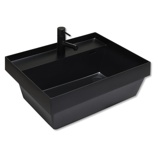 人工大理石製による深型の洗面ボウル。シャープなエッジが水はねを防ぎ、また、カウンター半埋め込みタイプのため、深さのあるボウルでもすっきり収まります。目皿カバーも同色・同素材を使用し、上質なカラーとマットな質感でスタイリッシュな商品に仕上がっています。
