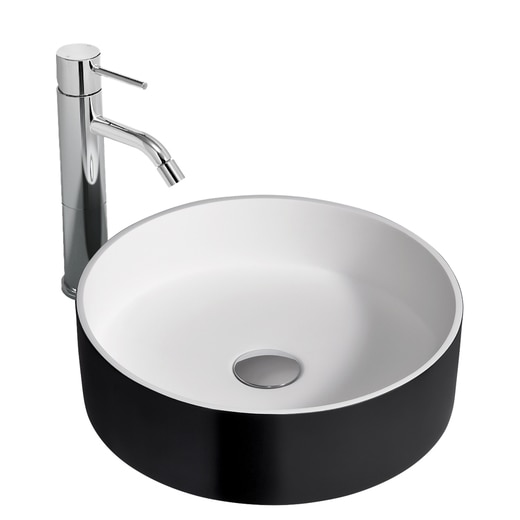 縁の薄いラウンド型に加え、つやを抑えたマットな質感にすることによって、人工大理石にモダンで軽やかな印象を添えています。