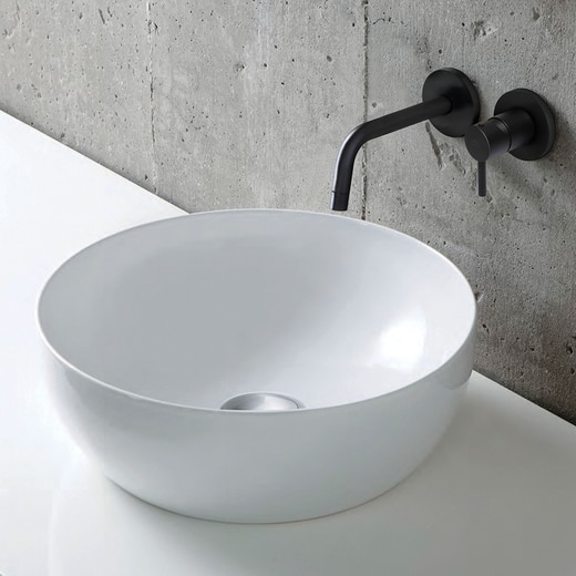 縁がより薄いタイプですっきりとしたデザイン力の高い洗面ボウル≪エレガンス≫。シャープなエッジが重量感を抑え、スマートでモダンな印象に仕上がります。