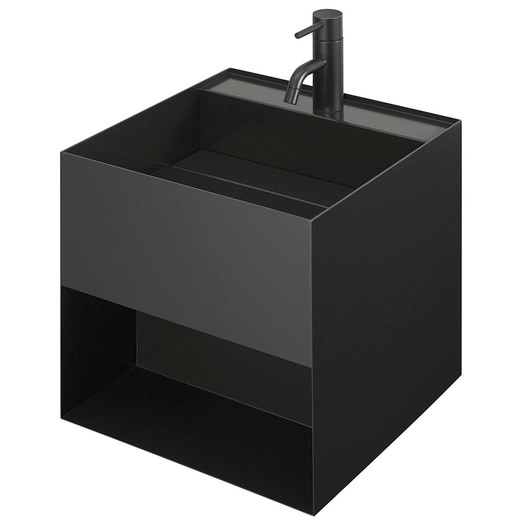 - 仕上げ:ブラック塗装仕上 収納サイズ:奥行165mm、開口高さ200mm ※排水開口がヨーロッパ規格のため、下部の必要排水金物と一緒にご購入ください。(※国内仕様のトラップは適合しておりません。) ※水栓・止水栓・排水トラップは付属しておりません。「適合水栓」よりお選びください。 ※ロットにより色差がある場合がございます。 ※設置につきましては、室内専用でご使用ください。 ※製造上、寸法誤差がございます。現物を確認の上施工してください。 ※水栓後ろの壁にタイル等を後貼りされると、水栓のレバーが干渉する場合がございますのでご注意ください。