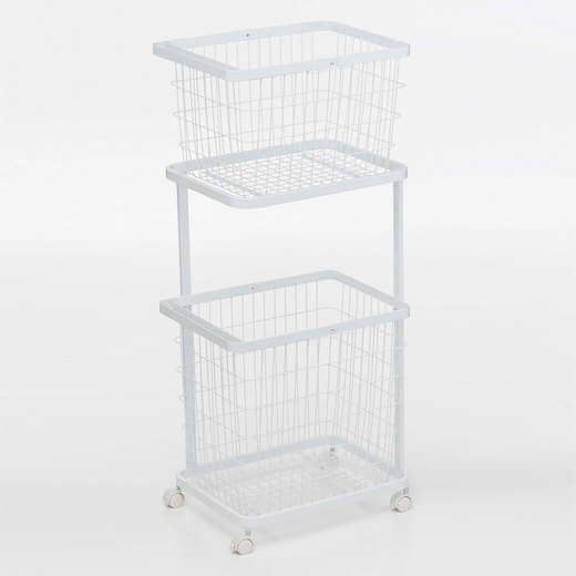- ●材質 [ワゴン] 本体:スチール(粉体塗装) キャスター:ナイロン [バスケット] 本体:スチール(ユニクロメッキ+粉体塗装) ※本製品は組み立て商品です。 ※常に水がかかるような場所でのご使用はお避けください。 ※屋内でご使用ください。屋外でのご使用は変色や錆の原因となりますので、ご使用はお避けください。