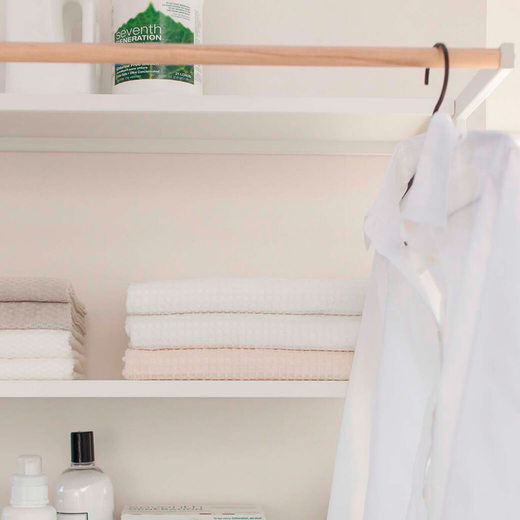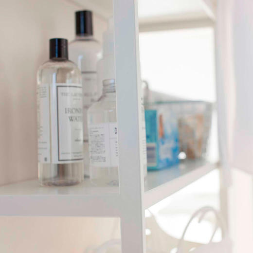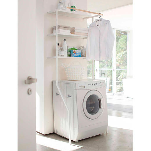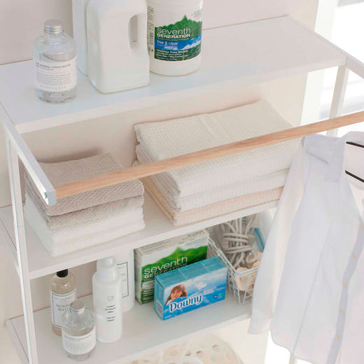 収納たっぷりの自立型ランドリーシェルフです。洗濯機上のデッドスペースを活用できます。3段シェルフには、洗濯用品やタオルなどをたっぷり収納出来ます。