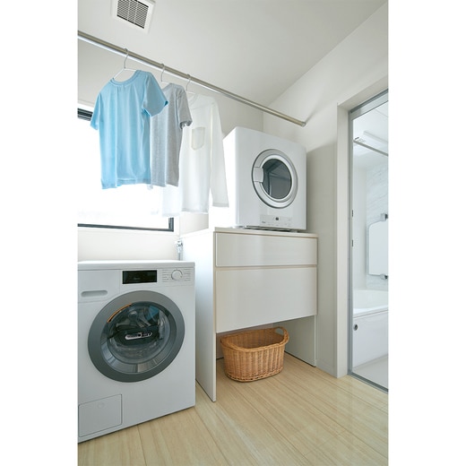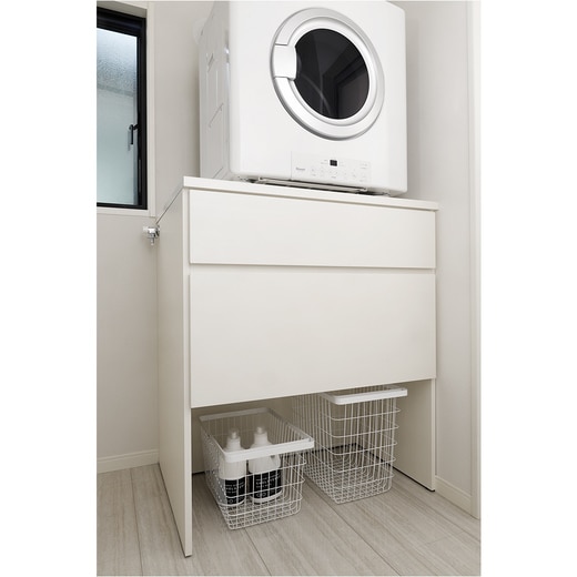 洗面脱衣室の洗濯機脇等に設置することで、洗濯用品やタオル、衣類等をすっきり収納することができます。2段引出タイプで、下段引出の高さはボトル洗剤を立てたまま収納できる便利な高さになっています。カウンター上に衣類乾燥機「乾太くん」を設置することができます。※「乾太くん」は東京ガスの登録商標です。