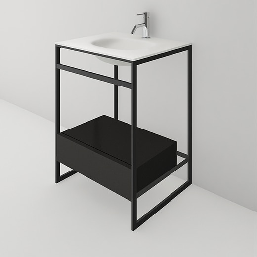 - ●カラー フレーム:ブラック 収納(引出し式):ブラック ●仕上げ フレーム:塗装(マット) 天板:ボウル一体型人工大理石 収納:メラミン化粧板(天板・側板)・オレフィンシート(扉・その他) ※水栓や排水金物等は含まれておりません。 ※洗面ボウルは、製造上、寸法誤差がございます。現物を確認の上施工してください。 ※収納引出の開閉は、引出前板の中央部分を押してください。前板の端を押すと左右のレールに均等に力がかからないためスムーズに開閉できない場合があります。 クリーニング方法:使用後、ソフトクロスにて拭き取ってください。 中性洗剤以外(塩素系・酸素系漂白剤等)は使用しないでください。色落ち・傷・色ムラの原因となります。