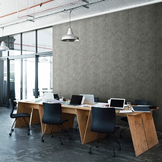 モルタルのリアルな質感を追求した、不燃内装化粧板です。薄くて軽いので、両面テープと接着剤で容易に施工ができます。キッチンなどの水回りはもちろん、リビングや寝室、マンションのエントランスや商業施設にも、壁材としてご使用いただけます。