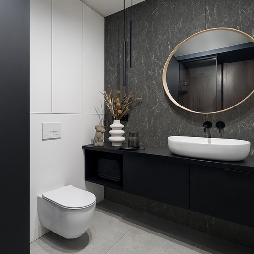 天然石を思わせるような濁りない美しさ。磨き上げたような鏡面性が上質さを引き立てる不燃内装化粧板です。両面テープと接着剤で容易に施工ができます。キッチンなどの水回りはもちろん、リビングや寝室、マンションのエントランスや商業施設にも、壁材としてご使用いただけます。