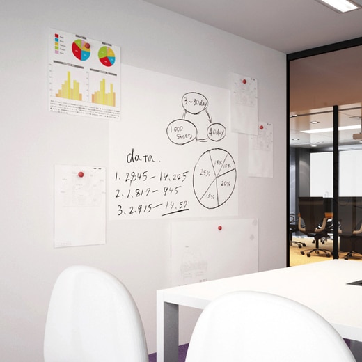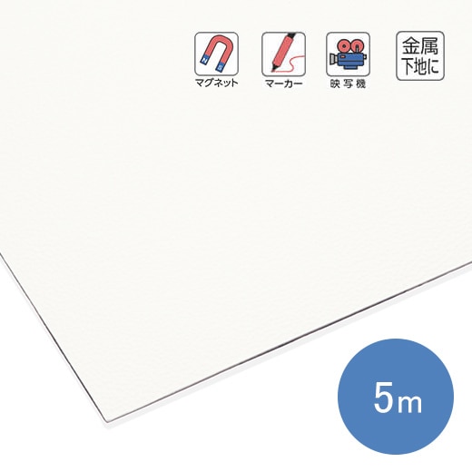 長さ5mの映写可能・取り外し可能・金属下地用ホワイトボードシートです。【マグネット取付○/ホワイトボードマーカーで書き消し○/映写○】