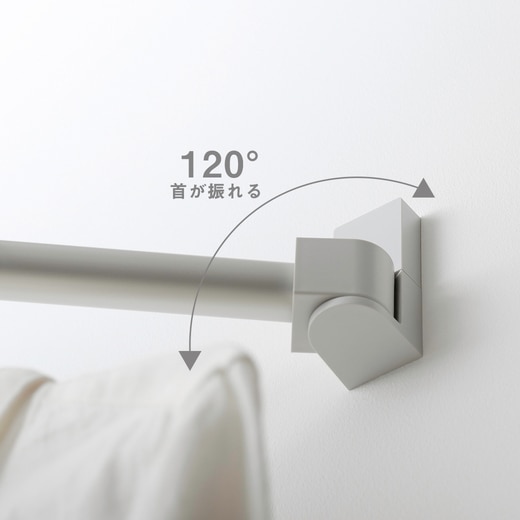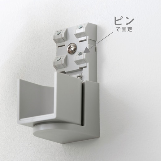 部屋干し用の洗濯物干しです。左右に60°ずつ首が振れるので斜めに竿を渡せます。一人暮らしでもお子さんがいるご家庭でもあらゆる部屋干しで活躍するスペックです。ネジとピンを組み合わせた簡単施工です。下地がある場所ない場所どちらにも施工可能なので、首振りと組み合わせて自由なレイアウトが可能です。下地のある壁はピンとネジの組み合わせ、下地の無い壁はピンのみで取り付けることが可能です。