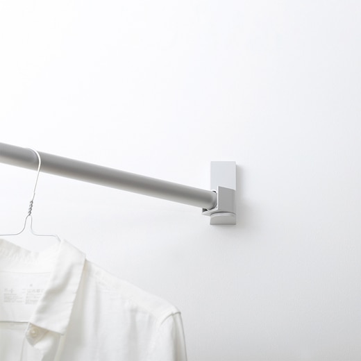 ●素材 アルミパイプ(アルマイト仕上げ)、ASA樹脂他   ●サイズ 本体:W38×D52×H91mm 竿掛け:φ28×16mm 竿:φ32×1040~1860mm (追加竿使用時:1770~2590mm) ●重量 本体:45g 物干し竿:650g ●カラー 本体/竿掛け:グレー 竿:グレー×シルバー ●注意事項 本製品は石膏ボード(木下地)に対応しています。 壁面に固定用ピンがしっかりと入ることを確認してください。 漆喰や土壁などのもろい壁や、コンクリートなどの硬い壁には使用できませんのでご注意ください。 高さ170cm以上の場所に設置してください。