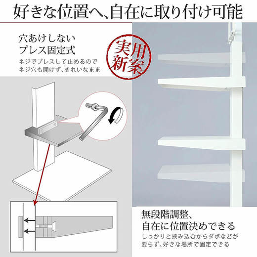 穴開けしないプレス固定で、好みの高さに取り付け可能。WALL 壁寄せテレビスタンドの美しさはそのままにデッキを置くことができます。