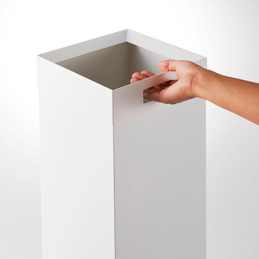 縦型の無駄のないデザインは、リビングはもちろんオフィスにもマッチします。容量も27Lと大容量なのも安心です。ポリ袋が外側から見えない構造になっており、ソファ横に置いても中身が見えにくい程良い高さでお部屋の空間を美しく保ちます。取っ手があるので持ち運びができるのもポイントです。