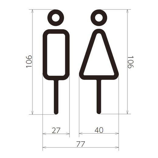 - 材質 アクリル サイズ 男性:W27×H106×D3mm 女性:W40×H106×D3mm ※素材のアクリルは強い衝撃が加わると割れることがあります。取り付けの際の落下や、取り付け後に無理にはがすと割れる可能性があります。