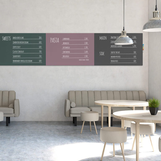 safroはフレームのない、すっきりと美しいライティングボードです。要素をできるだけ削ぎ落すことで、様々な空間に調和するデザインとなっています。連結が容易にできることもsafroの特徴です。また、散らかりがちなマーカーやイレーサーも横にスッキリと収納することができます。オフィスだけでなく、リビングでのコミュニケーションボードやカフェのメニューボードなど様々な空間でご活用ください。