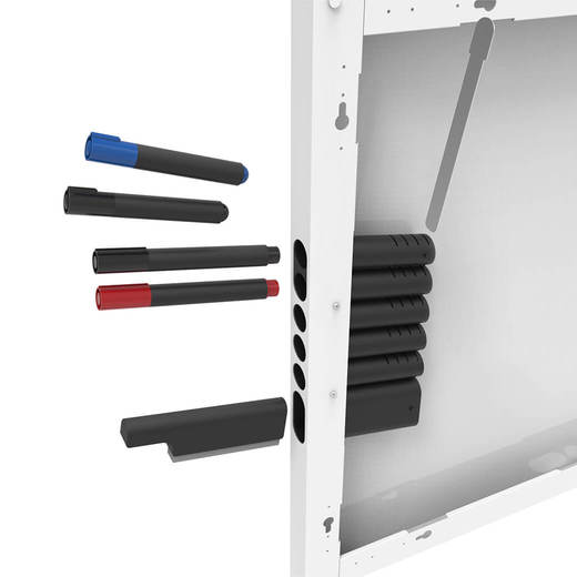 - ≪材質≫ ボード本体:スチール マーカーホルダー:ABS樹脂 仕切板:ポリ塩化ビニル ≪表面仕上げ≫ ボード本体:粉体塗装 ※注意事項 1. 直射日光・暖房器具など高熱を避けてください。変色、変形することがあります。 2. 水のかかる所や、湿度の高い場所での使用は避けてください。サビや変色、変形の原因となります。 3. ラッカーシンナー等の溶剤は使用しないでください。ボード面を痛める原因となります。 4. 筆記及び消去の際は、ホワイトボード用マーカー及び専用イレイサーをご使用ください。 本製品にはアルコール性マーカーをご使用ください。 5. 筆記した文字等は、長期間放置しないでください。消えにくくなることがあります。 6. ボード面にテープや接着剤等を使用しないでください。跡が残って取れなくなることがあります。 7.マーカーホルダーの奥行は85~118mmの四段階で調整が可能です。