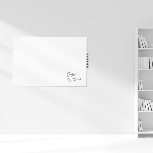 safroはフレームのない、すっきりと美しいライティングボードです。要素をできるだけ削ぎ落すことで、様々な空間に調和するデザインとなっています。連結が容易にできることもsafroの特徴です。また、散らかりがちなマーカーやイレーサーも横にスッキリと収納することができます。オフィスだけでなく、リビングでのコミュニケーションボードやカフェのメニューボードなど様々な空間でご活用ください。