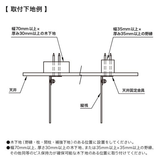 - ・パーツの組み合わせによって天井設置、片側を壁につけてL字設置、どちらでもお使いいただけます。 ・ハンガーパイプを切断することで長さの変更も可能です。(300mm~1200mmまで対応) 材質:スチール、アルミ 仕上げ:焼付塗装 ※揺れに関して 本品は設置完了後も物干しバーが動く(スイング)構造となっておりますが、万一製品に衝突してしまった場合の事故軽減及び壁材の負担吸収を目的としたものであり、異常ではありません。 ※注意事項※ ●分解、改造はしないでください。 ●木下地(野縁・柱・間柱・補強下地)のある位置に設置をしてください。 ●幅70mm以上、厚さ30mm以上の木下地、または35mm以上×35mm以上の野縁、その他同等のビス保持力が確保可能な木下地のある位置に取り付けてください。 ●設置完了後、ガタツキや緩みの無いことを必ず確認してください。 ●定期的にネジの緩みがないか点検し、緩くなった場合には付属の工具にて増し締めをしてください。 ●物干し以外の用途での使用は絶対にしないでください。 ●本品に登ったり、ぶら下がったりしないでください。 ●本品の耐荷重は10kgです。使用時に吊り下げる衣類は合計10kg以下となるよう調整してください。 ●使用するハンガーは樹脂製や表面がコーティングされた柔らかいものをお使いください。(※金属製など硬いものを使用すると商品にキズが付くおそれがあります)