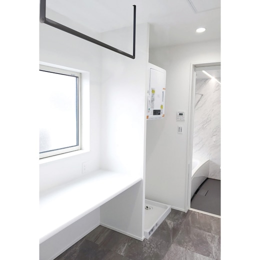 シンプルで使いやすい天井付け室内用物干し。装飾性を省いたデザインにべーシックなカラーでどんなお部屋にも調和します。