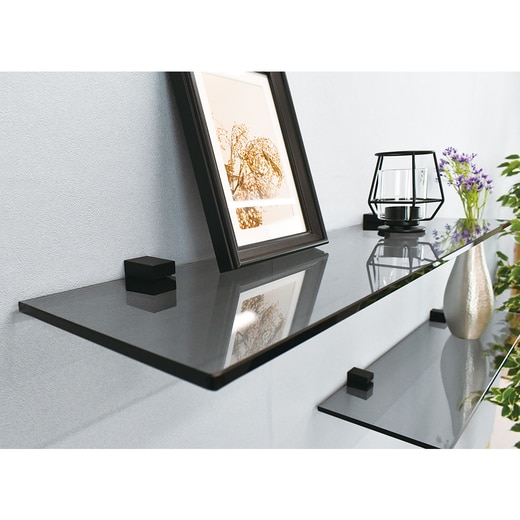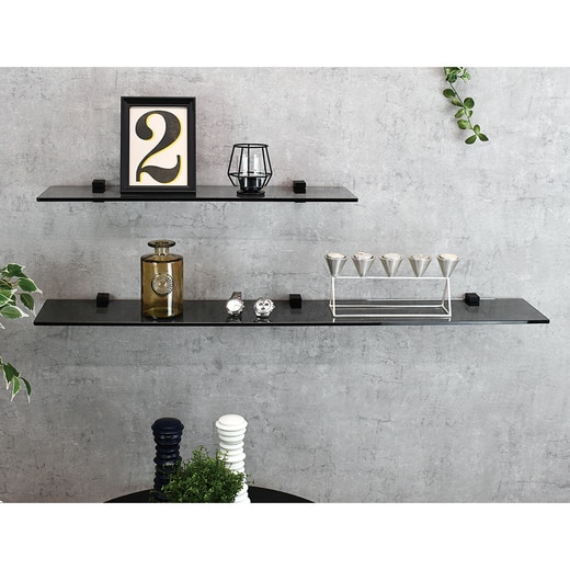 ガラスシェルフ《CLARO(クラーロ)》は厚さ8mmのガラス棚板、そこにシンプルなブラケットを用いたガラス棚となっています。それらが融合し高級感を醸し出しながら空間に溶け込み、お部屋の開放感を演出します。
