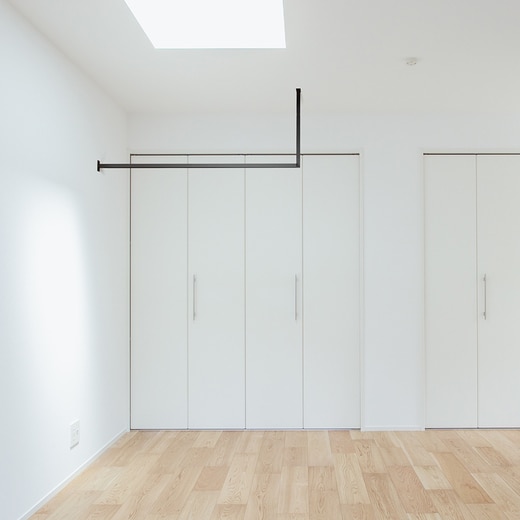 天井付け物干し「kacu」は、凹凸を極限まで無くした、シンプルな常設型物干しです。フレームに25×25mmの角パイプを採用し、フレームとフレームとのジョイント部分や壁付けブラケット部分も、凹凸を極限まで無くしたシンプルなデザインで、あらゆる部屋になじみます。●材質と仕上
