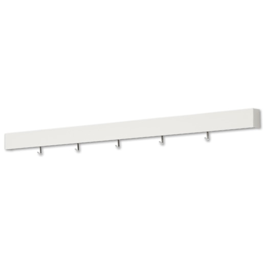 - ●材質: レール:アルミ材シート貼り仕上げ(ホワイト) キャップ:樹脂(ホワイト) フック:スチールメッキ ●安全荷重:本体を含めた合計荷重 石膏ボード用ピン:5kgまで 木壁用ネジ:10kgまで ※安全荷重は取付面の強度によって異なります。 ※従来品の専用オプションである、ZS02061 トレイは使用頂けません。