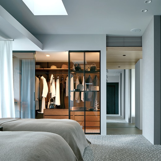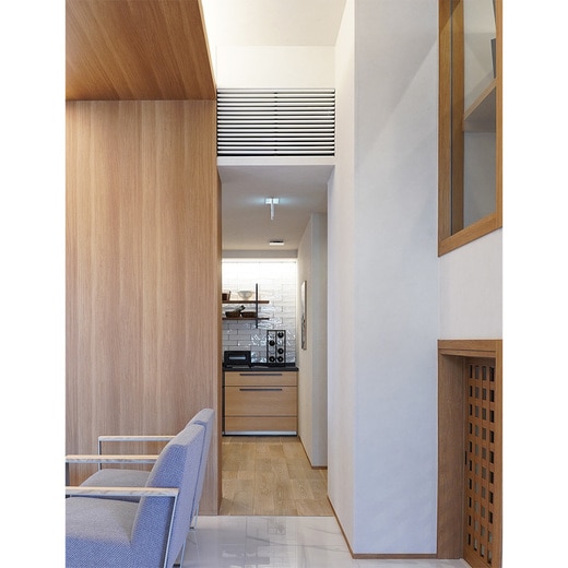 通風性があり緩やかに壁面開口部を目隠しできるルーバーです。無垢材のため開口に合わせて現場カット可能です。また縦桟が目立たないので横に並べて連続させることもできます。