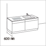 ※ウォール型の側面、ペニンシュラ型の壁側には、入り巾木はありません。
