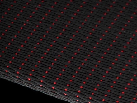 織り上げた赤色の経糸で、単色に見える畳にアクセント