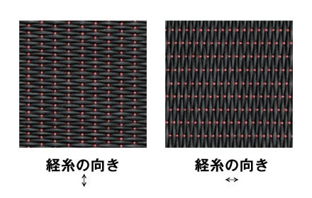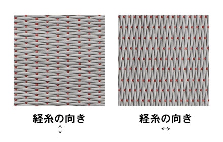 経糸の方向が↕↔となるよう配置することで市松模様になります。見る角度や光の加減によっても色味は変化します。