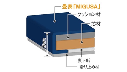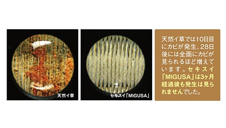 天然イ草に比べて色あせしにくく、耐久性にも優れています。