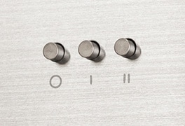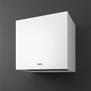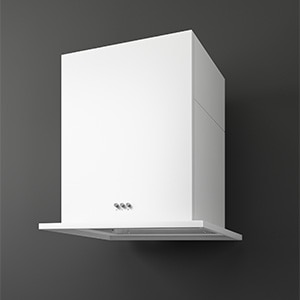 コンパクトなサイズ感と究極のシンプルデザインにより、幅広いキッチンコーディネートに調和する《ミニマルプラス》。《ミニマル》のデザインを一新し、光沢を“二分艶”に抑えた塗装を施し、より上質な印象を生み出しています。さらに、側面の仕上げ材である横幕板や、ダクトを意匠的に見せるエルボといったパーツも、本体のカラーに合わせることですっきりとしたイメージを徹底。操作スイッチ部についても、本体になじむシンプルデザインとしながら、風量を示すピクトグラムを付けて視認性を高めました。