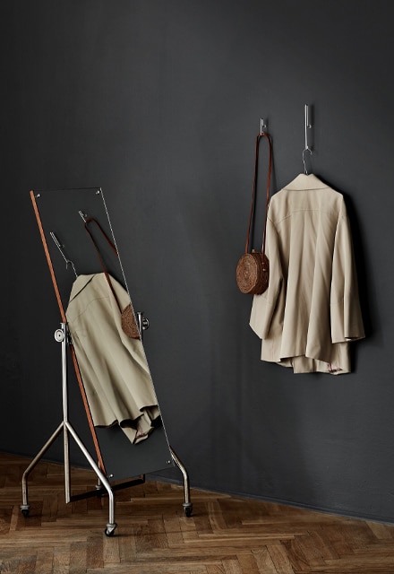 スチールフレームと鏡をシンプルに組み合わせたミニマムなMOEBE MIRROR(ムーベ ミラー)。どんなシーンにも溶け込む、本質的な要素だけを残した洗練されたデザインです。