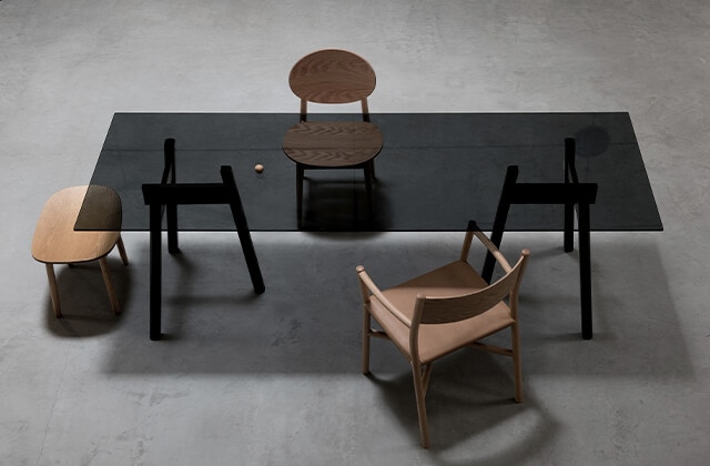 家具の町である佐賀県諸富町のレグナテックと平田椅子製作所の2社で立ち上げた家具ブランド「ARIAKE(アリアケ)」。デザイン性が高く使い心地の良い家具の中から、チェア・ベンチ・スツールを取り揃えました。