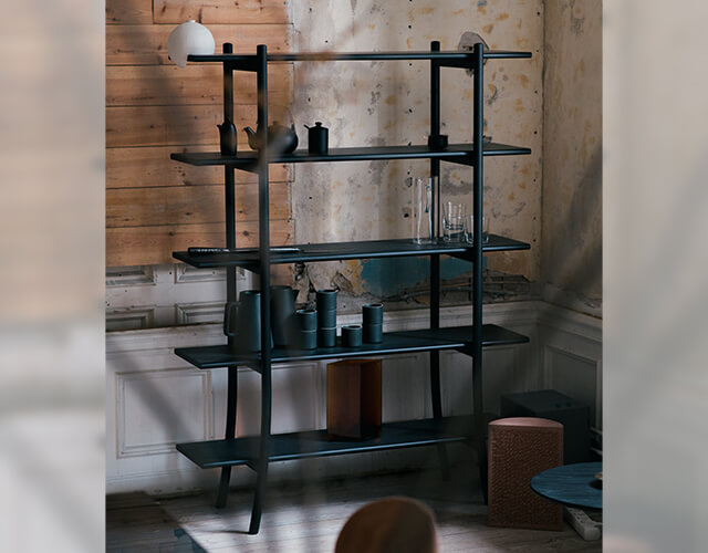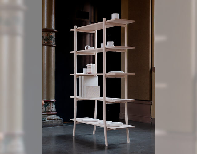 棚の脚部の緩やかに湾曲したディテールは、熱気球から吊るされたロープのはしごを連想させます。繊細かつ機能的なデザインです。