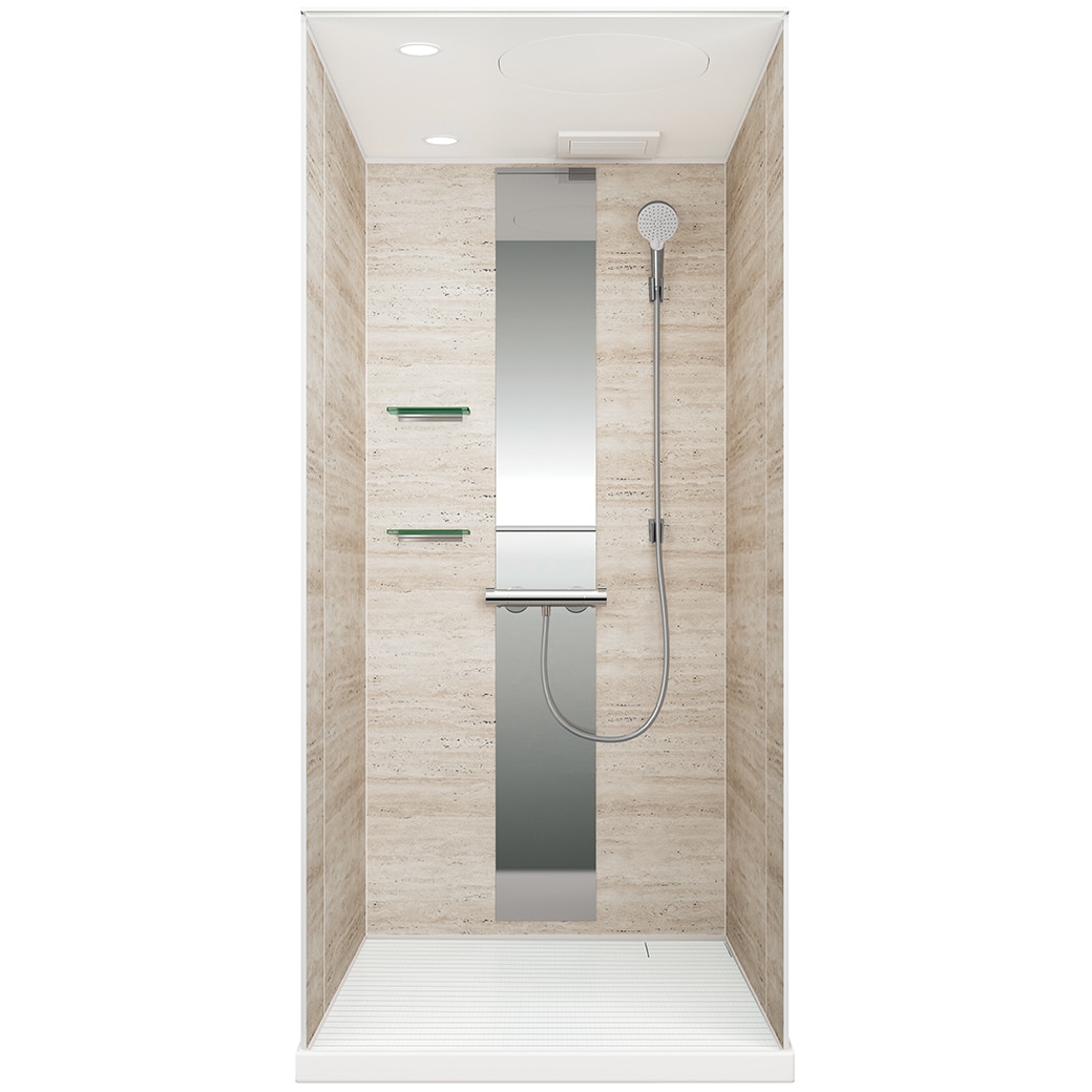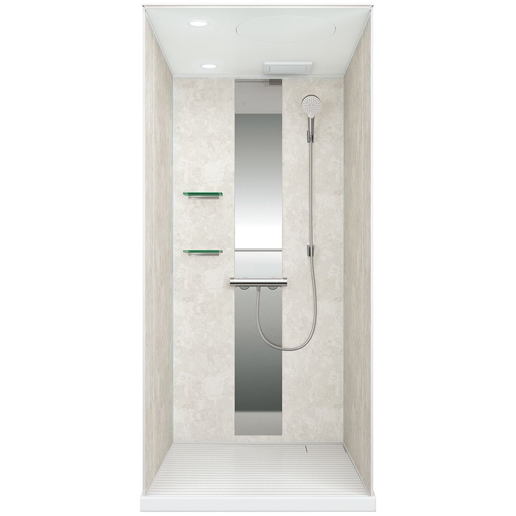 「大きいサイズのシャワーブースがほしい」という声を受け、間口900mm×奥行1200mmのシャワーブースが新登場。大柄な方でも窮屈さを感じることなく、ゆったりとお使いいただけます。また、壁パネルや床カラーの多彩なバリエーションや、オプションをご用意しており、戸建、集合住宅、ホテルなど空間に合わせてお選びいただけます。セカンドバスルームとして、寝室エリアなどに設置するのもおすすめです。