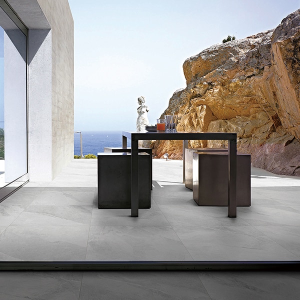 スレートの風合いを再現したタイルは、滑りにくいのはもちろんのこと、汚れがつきにくいことが特長です。吸水性も低いため、洗面所やランドリースペースなどの住宅の水回りや屋外、または飲食店をはじめとする商業施設にもおすすめです。