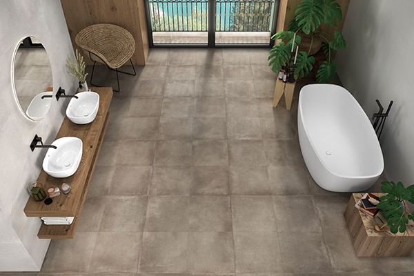 スペインのタイルメーカーが、イタリア北部にあるコモ湖近くの山村をイメージして生み出した《ラココ》。やわらかな色合いのほどよい濃淡が美しく、素朴で飽きのこないデザインです。裸足でも心地よいほどなめらかな表面でありながら、滑りにくい「Slip-Stop」という技術を採用しているため、水まわりにもおすすめです。