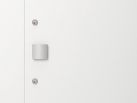 余計な要素をそぎ落としたミニマルデザインのインターホンカバー。フラットな「面」や、塗装の美しさが際立つスクエアなフォルム。1枚のプレートのように見え、ポスト《ブレッタ》と縦に並べれば横幅がぴったりと揃います。