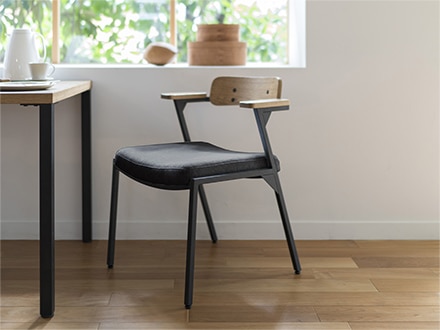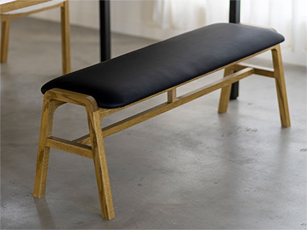 ADRS(アドレス)は、日本で生まれた家具ブランド。あらゆる空間になじむ、シンプルかつ味わい深い風合いが魅力です。日々の生活に寄り添うことを目指し、素材から選び抜きながらもリーズナブルな価格を実現しています。今回ご紹介するチェアとベンチも、家族が毎日集まるダイニングに最適。ファブリックや合皮とオーク材を組み合わせ、ほどよくナチュラル、ほどよくインダストリアルなデザインに仕上げています。ミラタップが提案している《グラッド45》の《ステンレストップテーブル》などにもよく調和します。