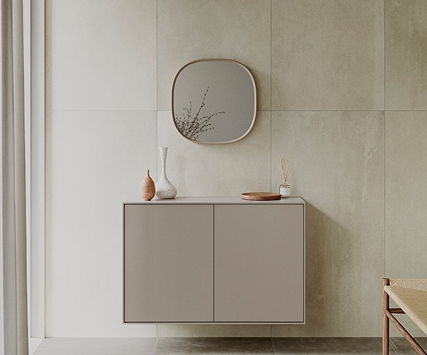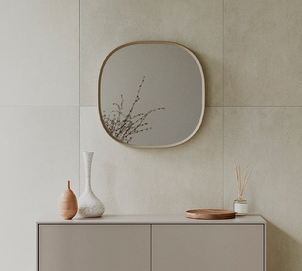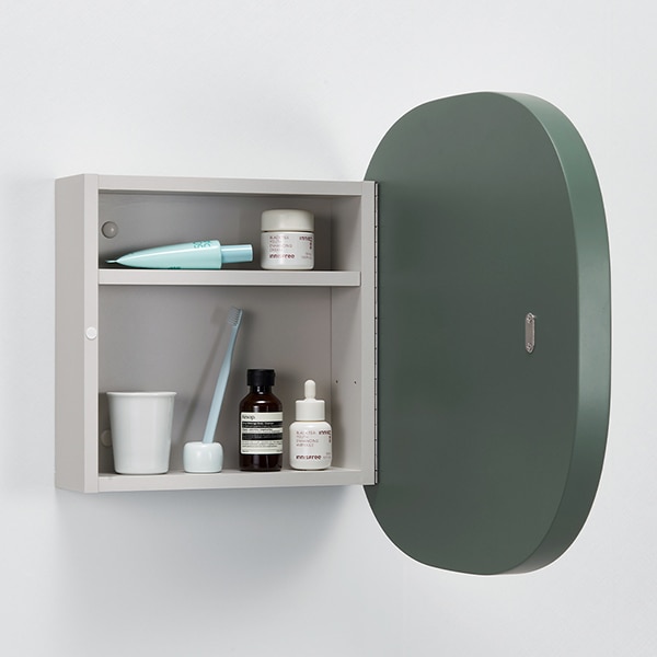 玄関やリビングなどのインテリアに合わせやすい〈キュイミラー〉と、セカンド洗面などにも使いやすい収納付きの〈キュイミラー ボックス〉をご用意。ボックス部分はわずかにグレーを帯びた色味で、空間になじみやすく存在感を抑えています。